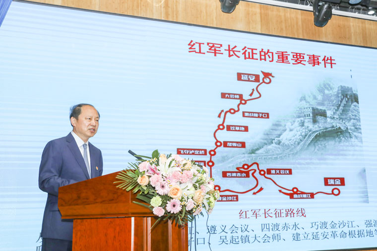 党委书记单保恩以“重走长征路”为主题带领大家重温党史,围绕“四渡赤水”的背景、过程、意义三个方面生动地讲解了红军四渡赤水的伟大诗篇。单书记指出,“四渡赤水”之战,是中央红军长征中最惊心动魄、最精彩的军事行动,是毛泽东军事生涯中的“得意之笔”,也是他的高超指挥艺术的生动体现,是走向最终胜利的重要转折,是红军战争史上的奇观,是以少胜多、变被动为主动的光辉典范。四渡赤水最重要的意义是红军选准了前进的方向和道路,决定了革命的命运。这对今天和未来都有着重要的启示,它充分展现了红军艰苦奋斗、百折不挠的革命英雄主义精神以及共产党人不因循守旧的创新精神,是我们党和国家的重要财富。