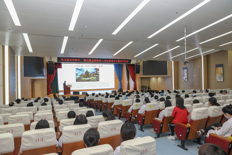 为庆祝中国共产党建党100周年,扎实开展党史学习教育,5月8日,第四、十九、二十、二十一、三十四党支部在新大楼6楼报告厅联合开展了“学习党史守初心,凝心聚力担使命”——书记讲党史主题党日活动。我院党委书记单保恩、党委副书记李晓玲,党委办公室、组织部、宣传部负责人,各党支部书记和近150名党员及积极分子参加活动。
