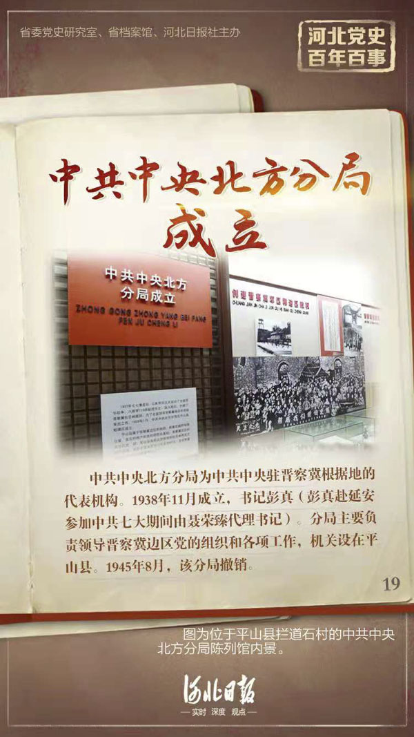 中共中央北方分局为中共中央驻晋察冀根据地的代表机构。1938年11月成立,归中共中央北方局领导,书记彭真(彭真赴延安参加中共七大期间由聂荣臻代理书记)。分局主要负责领导晋察冀边区党的组织和各项工作,机关设在平山县,领导晋察冀、冀中、冀热察三个区党委,并负责北平、天津、唐山等敌占大城市党的工作。1944年9月到10月,在分局领导下,建立冀晋、冀察、冀中、冀热辽4个区党委。1945年8月,该分局撤销。