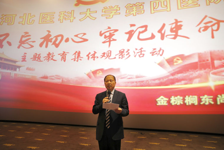 单保恩书记在影片开始前进行讲话。他指出,目前全国上下正在开展“不忘初心、牢记使命”主题教育,我院党委把这项工作当成最重要的事情认真开展,狠抓落实,全院上下都在以实际行动做实、做好。他表示,我们的幸福生活是如此来之不易,所以我们有职责、有义务,也有激情与活力去努力学习和工作,保障人民群众健康,让祖国更加繁荣富强。在党中央的正确领导下,在习近平新时代中国特色社会主义思想的指导下,始终保持旺盛的生机和活力,为实现“两个一百年”奋斗目标,实现中华民族伟大复兴的中国梦而奋斗。
