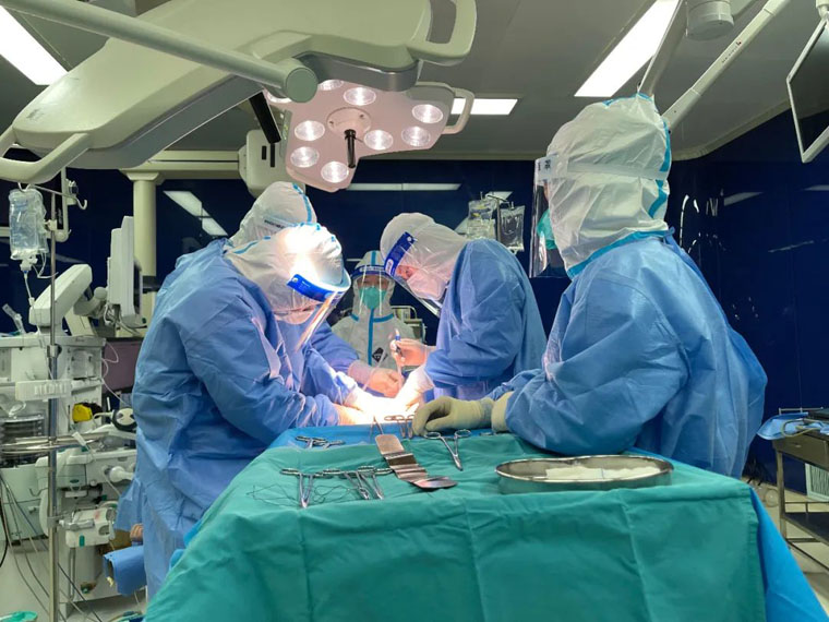 外三科核心小组高度重视,一致判断患者为消化道穿孔伴急性弥漫性腹膜炎,有感染中毒性休克前期的表现,病情重,会危及生命,需要紧急治疗。按照国家新冠疫情最新防控措施及医院最新政策,第九党支部委员、外三科副主任张志栋教授,积极联系医院总值班、院感科、麻醉科、手术室等部门,充分沟通协商,开辟绿色通道,在做好必要的术前准备和严格防护的前提下,为患者进行急诊手术治疗。
