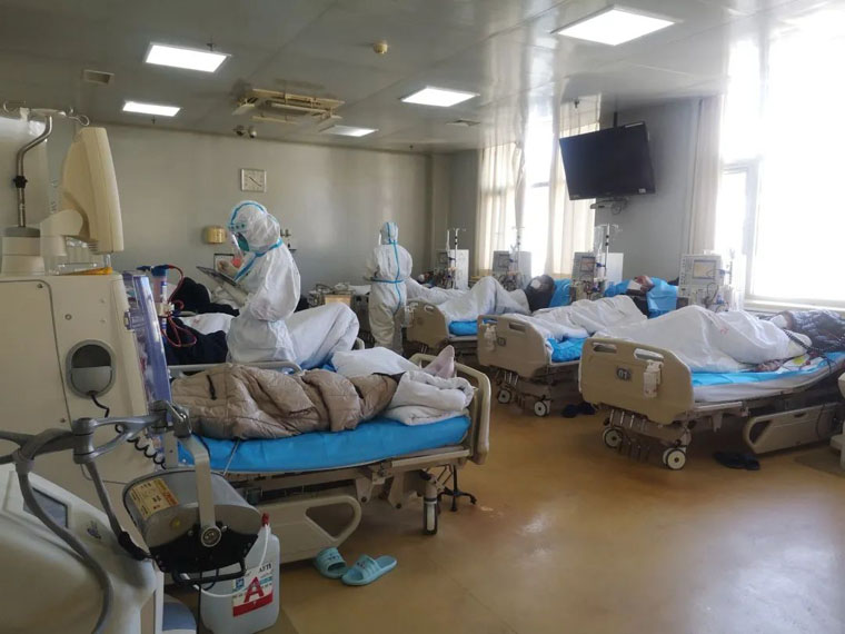 11月19日,河北省胸科医院被指定为定点医院,需转出所有透析患者,我院肾内科作为河北省血液净化质控中心挂靠单位,在院领导的协调下克服重重困难,接收了来自该院的所有透析患者。为保证600百余名患者的透析治疗,他们将血透班次从平常每日3个班次,增加到每日4个班次,20小时连续运转,人停机不停……在高强度、高难度的工作面前,肾内科医护人员没有退缩,逆势而上,他们像“盾牌”一样牢牢挡在了患者前面,挡在了病毒前面。同时,在自身医务人员数量紧缺的情况下,科室先后派出5名医护人员前往我市定点医院血透室支援。
