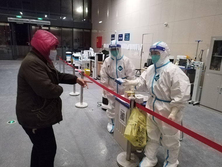 护理工作细致入微,遇到了与以往不同的挑战,习惯了全电脑操作的队员在条件有限的情况下又回归了“手工时代”。护理队长张缜、杨静从进舱的第一天开始,带领大家完善健康宣教、入院流程、表格标签等,大家群策群力,不断完善修订。从“采集核酸”这类高危操作到与志愿者为感染者发饭、协助清理生活垃圾,每一项琐碎的工作逐渐融入了日常的护理工作。全队上下逐渐形成默契,各自在岗位上尽最大努力把工作流程整理得更顺畅,绞尽脑汁完善每一个细节,把每一个感染者的护理做到最好。