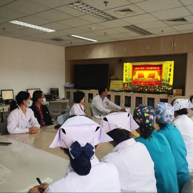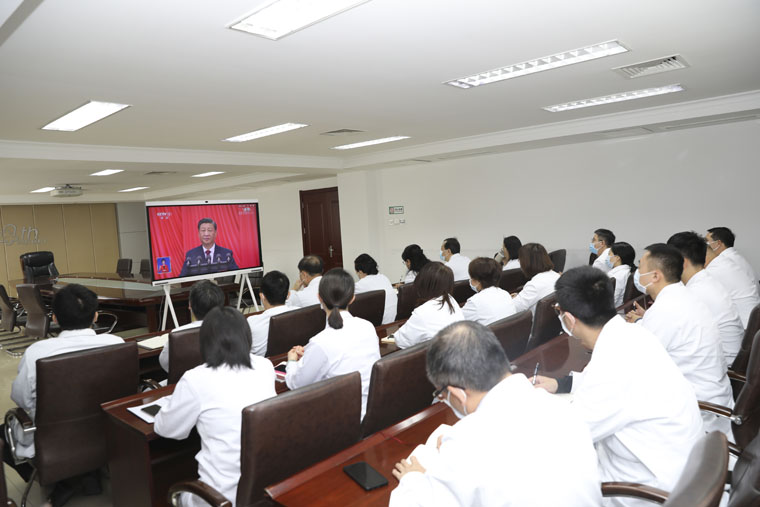 我院党委书记单保恩在集中观看后作总结发言,他指出,党的二十大,是在全党全国各族人民迈上全面建设社会主义现代化国家新征程、向第二个百年奋斗目标进军的关键时刻召开的一次十分重要的大会。医院党委要认真组织学习、宣传贯彻二十大精神和习近平总书记重要讲话精神,站在增强“四个意识”,坚定“四个自信”,做到“两个维护”的高度,充分认识二十大的重大意义、精准把握核心要义、深刻领会丰富内涵,真正把思想和行动统一到二十大精神上来,确保二十大精神在我院落地生根,并形成生动实践。