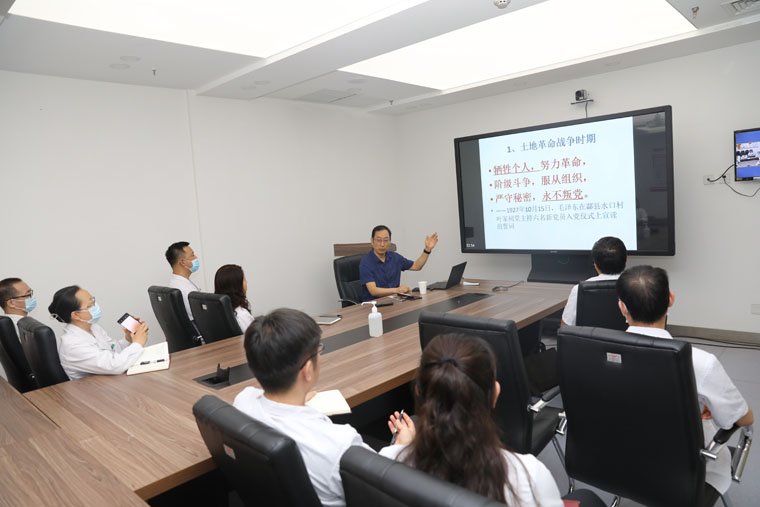 张占辉教授深入浅出地解读了党五个不同历史时期的入党誓词演变历程,阐述了不同时期入党誓词的深刻内涵和历史意义。讲座结束后,与会党员踊跃发言,时高峰主任医师指出,不同历史时期的入党誓词都蕴含着不同时代的印记,反映了各个时代的特征,是中国共产党人百年奋斗历程的浓缩,揭示了党在不同发展阶段的时代特征。 第26党支部书记韩若凌同志表示,重温和深刻领会不同历史时期的誓词内涵,有助于我们真正懂得“没有共产党就没有新中国”,有利于我们更加坚定永远跟党走的信念。
