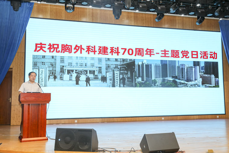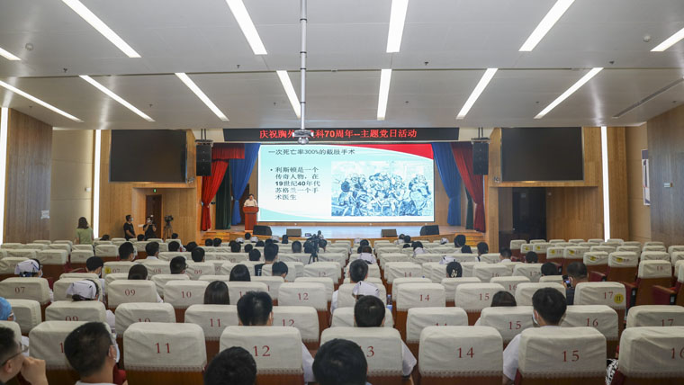 为庆祝我院胸外科建科70周年,增进中、青年医护人员对世界胸外科史和我院胸外科发展历史的认识,更好地了解胸外科技术的更新与发展,应广大医护人员要求,7月27日,第13党支部书记刘俊峰、第14党支部书记何明、第15党支部书记姚继方、第45党支部书记田子强在本部新医技病房楼报告厅组织举办了一场别开生面的主题党日活动。田子强主任为胸心外科全体医护人员、研究生、进修生以及社培人员等200余人讲授了一堂内涵丰富的医学历史课——《胸外科学简史》。活动由何明主任主持。