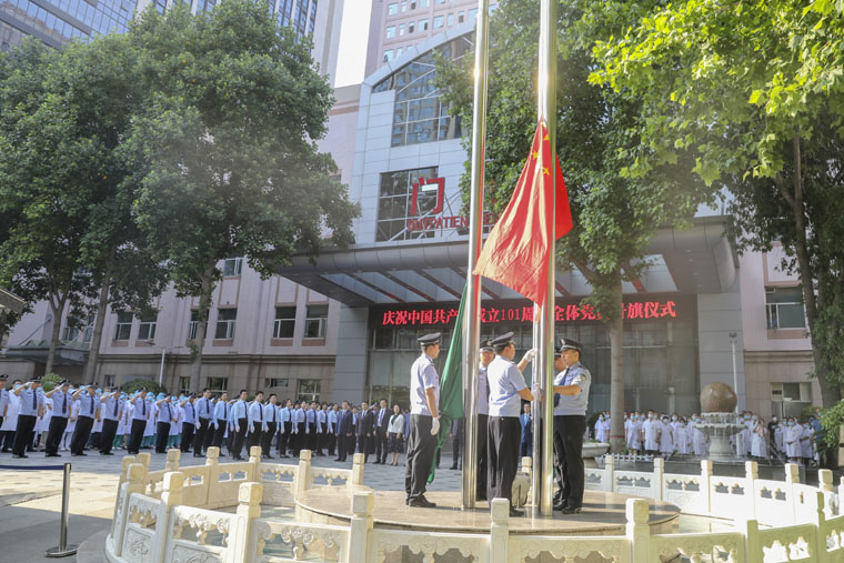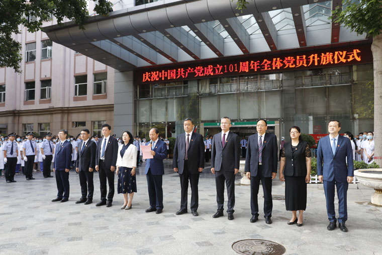 7月1日,在中国共产党成立101周年之际,我院在本部和东院区隆重举行了庆祝中国共产党成立101周年全体党员升旗仪式。全体在院党政领导与广大干部职工、患者及家属一道满怀喜悦,共迎党的101岁生日。