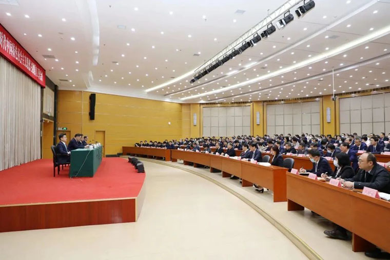 4月17日下午,学校召开学习贯彻习近平新时代中国特色社会主义思想主题教育工作会议,深入学习贯彻习近平总书记在中央主题教育工作会议上的重要讲话精神,全面落实河北省主题教育工作会议要求,对全校开展主题教育进行动员部署。省委主题教育第十七巡回指导组组长,省十三届政协常委、省政协财经委副主任杨景祥同志,省委主题教育第十七巡回指导组副组长、廊坊市人大常委会副主任李桂强同志到会指导,学校党委书记、主题教育领导小组组长翟海魂作动员部署讲话,党委副书记倪铁军主持会议。