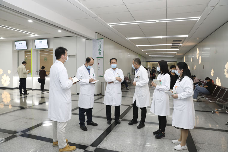 5月11日,田子强副院长带领医保办、信息管理处、医疗服务中心等部门负责人到信息管理处办公区、手术室标本查看处、病区专人探视管理处、医保咨询及办公区等地检查督导,现场办公解决问题。