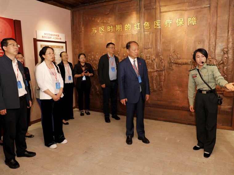 大家先后奔赴古田会议旧址群、叶坪革命旧址群、中央红色医院旧址、瑞金中央革命根据地历史博物馆、沙洲坝红井革命旧址群、中华苏维埃共和国临时中央政府大礼堂旧址、长征第一山等地,深刻学习“八子参军、战死沙场”“沙洲坝红井”“陈发姑一生守望”等红色故事,在叶坪革命旧址群红军烈士纪念塔前敬献了花篮,重温入党誓词,接受精神洗礼。