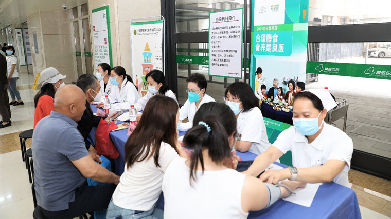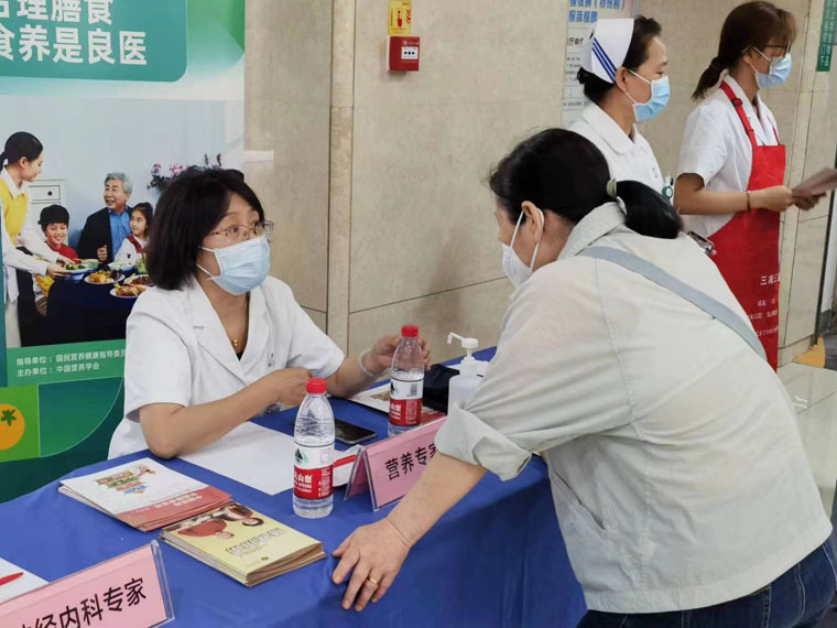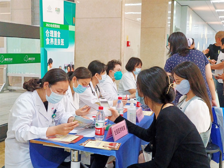 5月17日,临床营养科联合心血管内科、神经内科、内分泌科、生殖医学科等专家在医院门诊大厅举办了营养咨询义诊活动,立足于2023年新版高血压、高脂血症、糖尿病及儿童青少年生长迟缓食养指南,契合“食养是良医”的主题,为广大患者朋友提供有关日常饮食指导、降血压、降血脂、降血糖及备孕减重等医学咨询服务。医务人员针对适配“三高”等基础疾病的日常食养做指导和宣教,同时发放“中国居民膳食指南”等宣传册及限油壶、限盐勺,旨在让更多人了解营养相关知识,改善居民不良饮食习惯。很多来诊人员表示,“通过参加活动了解了很多日常饮食知识,认识到许多疾病的治疗和长期维持都和‘食养’脱不开关系,希望日后能有更多这样的机会了解营养。”