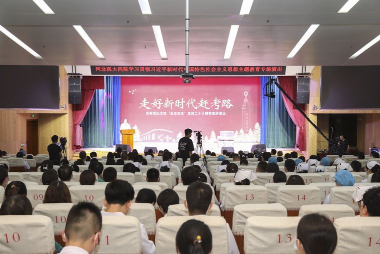 7月10日,为进一步深入开展学习贯彻习近平新时代中国特色社会主义思想主题教育,我院邀请西柏坡纪念馆艺术团在本部新医技病房楼报告厅进行专场演出,线上同步直播。全体在院党政领导、各党支部代表400余人现场观看学习,一起深入领会我们党的宝贵财富——西柏坡精神。
