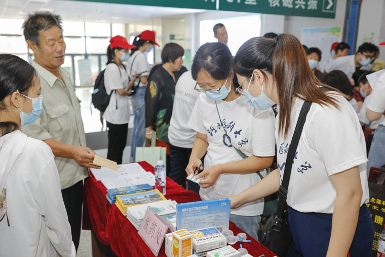 我院对口帮扶赞皇县医院已坚持40年,农历二十六是赞皇县传统大集,也是我院专家的固定“下点日”。当日一早,服务团抵达赞皇县医院,大家立刻在门诊大厅布置义诊区域,迅速进入工作状态。面对络绎不绝的群众,团队成员分工明确、有条不紊,专家们询问病史、仔细阅片、听诊号脉,为老乡们答疑难、讲知识、定方案;青年团干部及学生志愿者量血压、测血糖、分发药品、发放科普宣传资料,并针对相关健康管理方面注意事项开展宣教。本次义诊共为当地群众提供现场诊治,健康咨询,检测血压、血糖等服务300余人次,发放科普宣传资料400余份,赠送大量药品,得到当地群众的一致称赞。