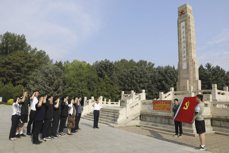 20日清晨,我院领导、义诊专家和驻村工作队员在董存瑞烈士陵园集合。在烈士纪念碑前,单保恩书记带领大家高举右手,庄严宣誓,重温入党誓词。随后,大家参观了烈士纪念馆,瞻仰烈士纪念碑、董存瑞烈士塑像,缅怀革命先烈事迹,通过参观学习,深刻感悟共产党人的初心使命和责任担当。