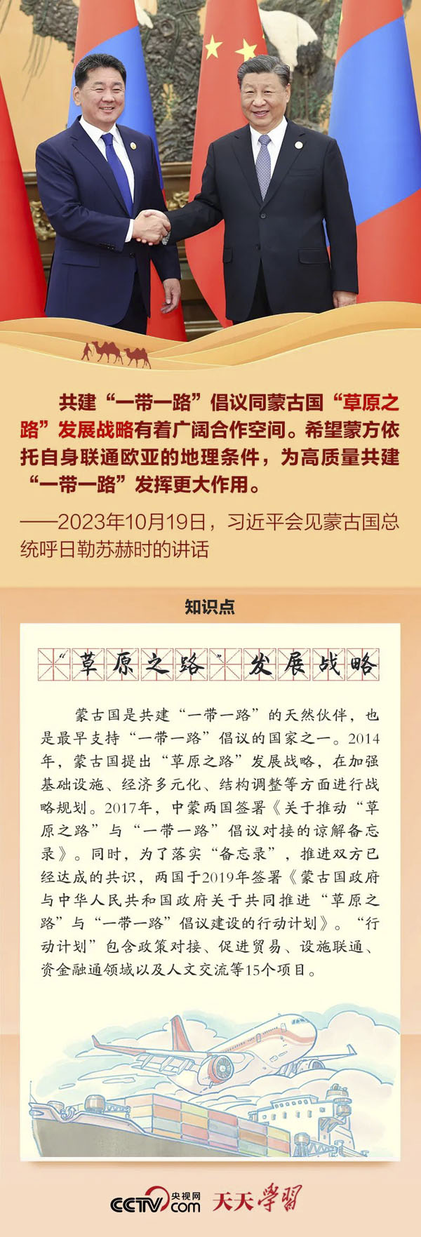 在面对面交流中,习近平主席提到“中蒙俄经济走廊”“真实亲诚对非政策理念”“全球南方国家”“鲁班工坊”“‘复兴丝绸之路’战略”等多个名词。