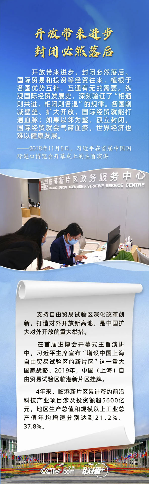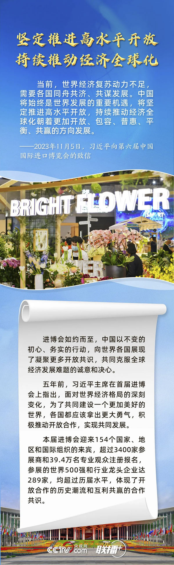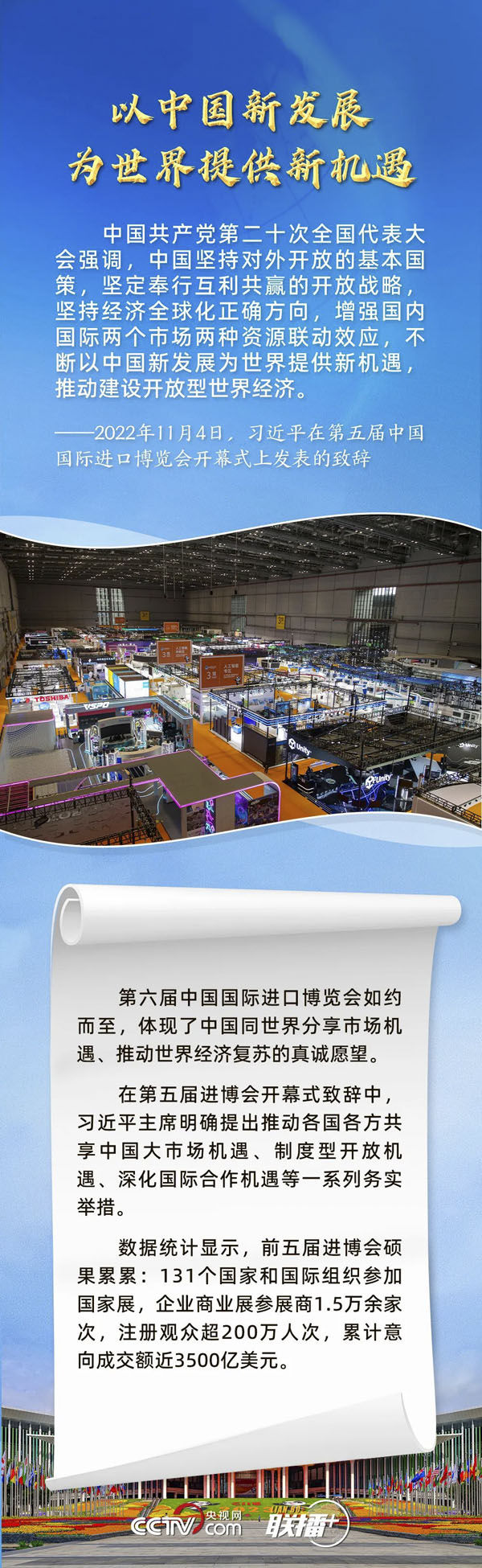 11月5日,第六届中国国际进口博览会在上海开幕。习近平主席在致信中指出,2018年以来,进博会成功举办五届,依托中国大市场优势,发挥国际采购、投资促进、人文交流、开放合作平台功能,对加快构建新发展格局和推动世界经济发展作出了积极贡献。