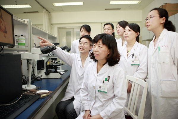 ​癌检中心经过几代细胞学专家(冼美生教授、于风玲教授、刘鹿宁教授、杜芸教授)的艰苦奋斗、不懈努力和开拓进取,已发展为集细胞学诊断与分子检测于一体的河北省最大的细胞学诊断与检测中心。我们开展的工作主要包括针吸细胞学、妇科和非妇科脱落细胞学诊断、免疫细胞化学、DNA倍体检测、基因突变检测、循环血肿瘤细胞检测等。目前科室包括医师8名,技术员5名,其中主任医师1名,主治医师4名,住院医师3名,副主任技师1名,技...
